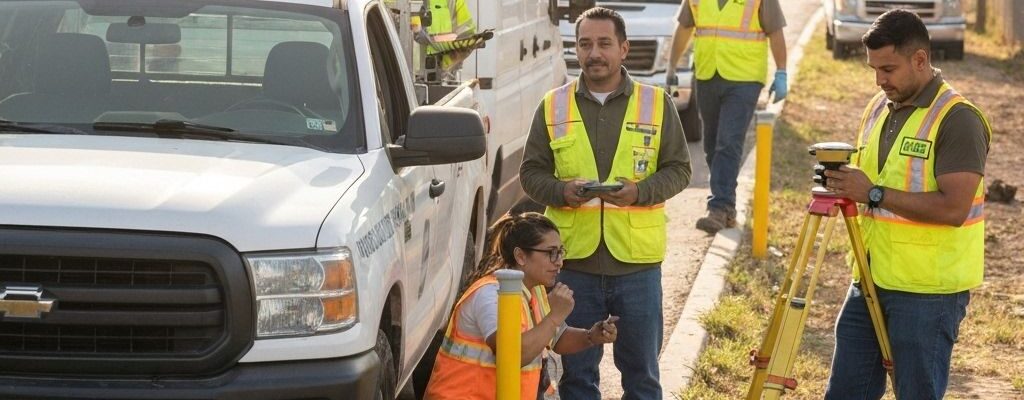 Right-of-way mapping and utility location for municipal water system expansion.
